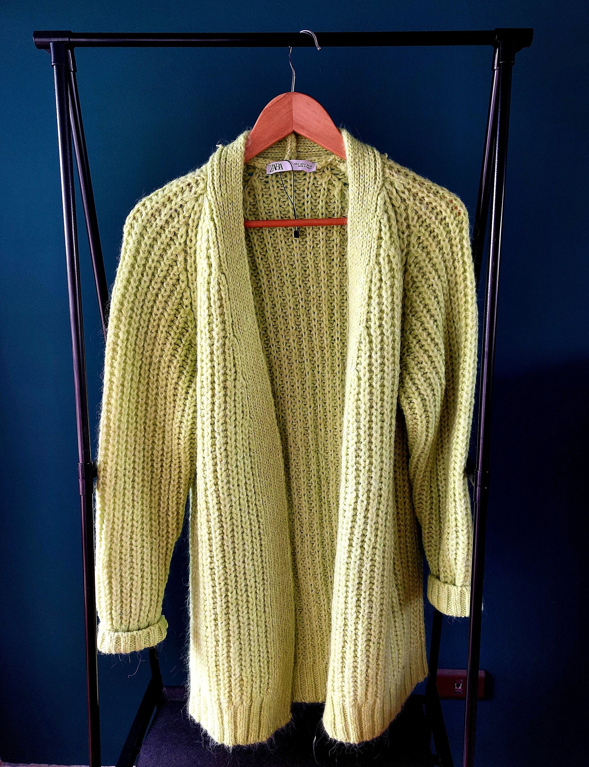 Este Cárdigan ZARA, de tono veraniego ideal para tardes primaverales, de intenso verde limón...queda perfecto con un top blanco!