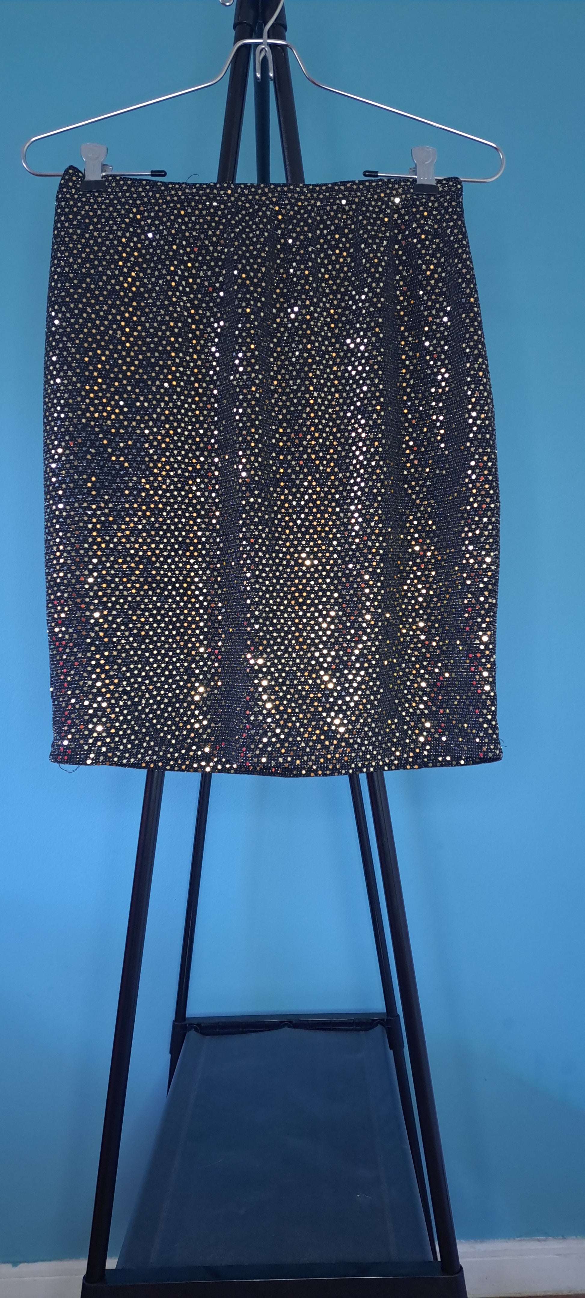 Falda con lentejuelas doradas, femenina máxima, recta ajustada, queda increíbleeee!!