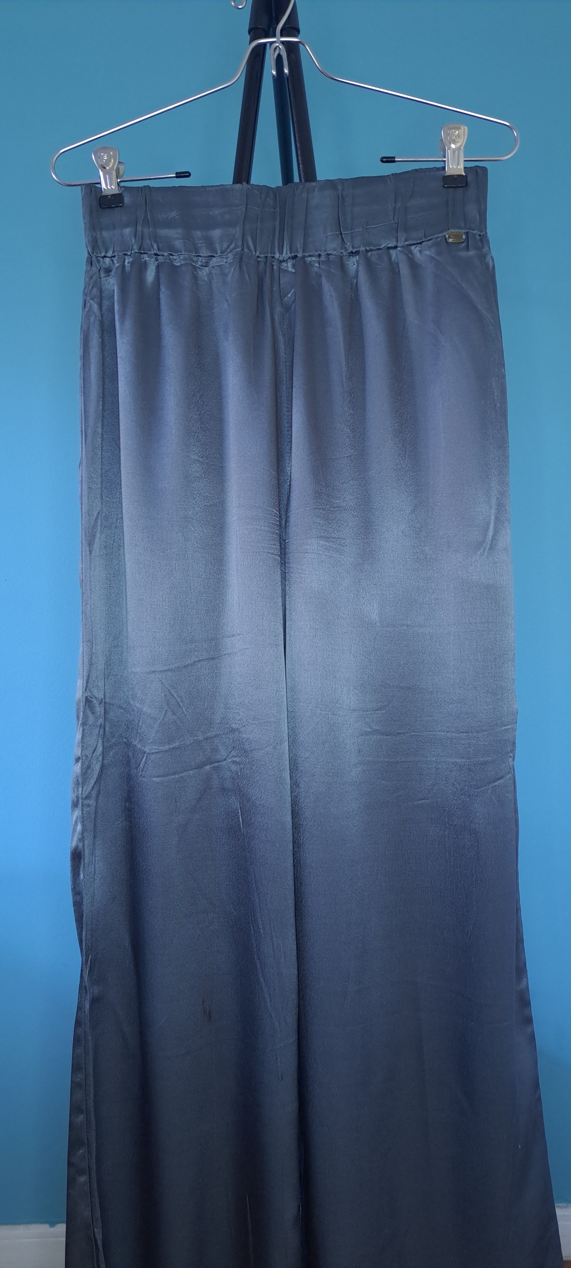 Pantalón modelo palazzo de un lindo color verde musgo, de seda marca UMBRALE, en la foto no se distingue color muy bien, pero si te gustan los colores tierra...no lo dudes!
