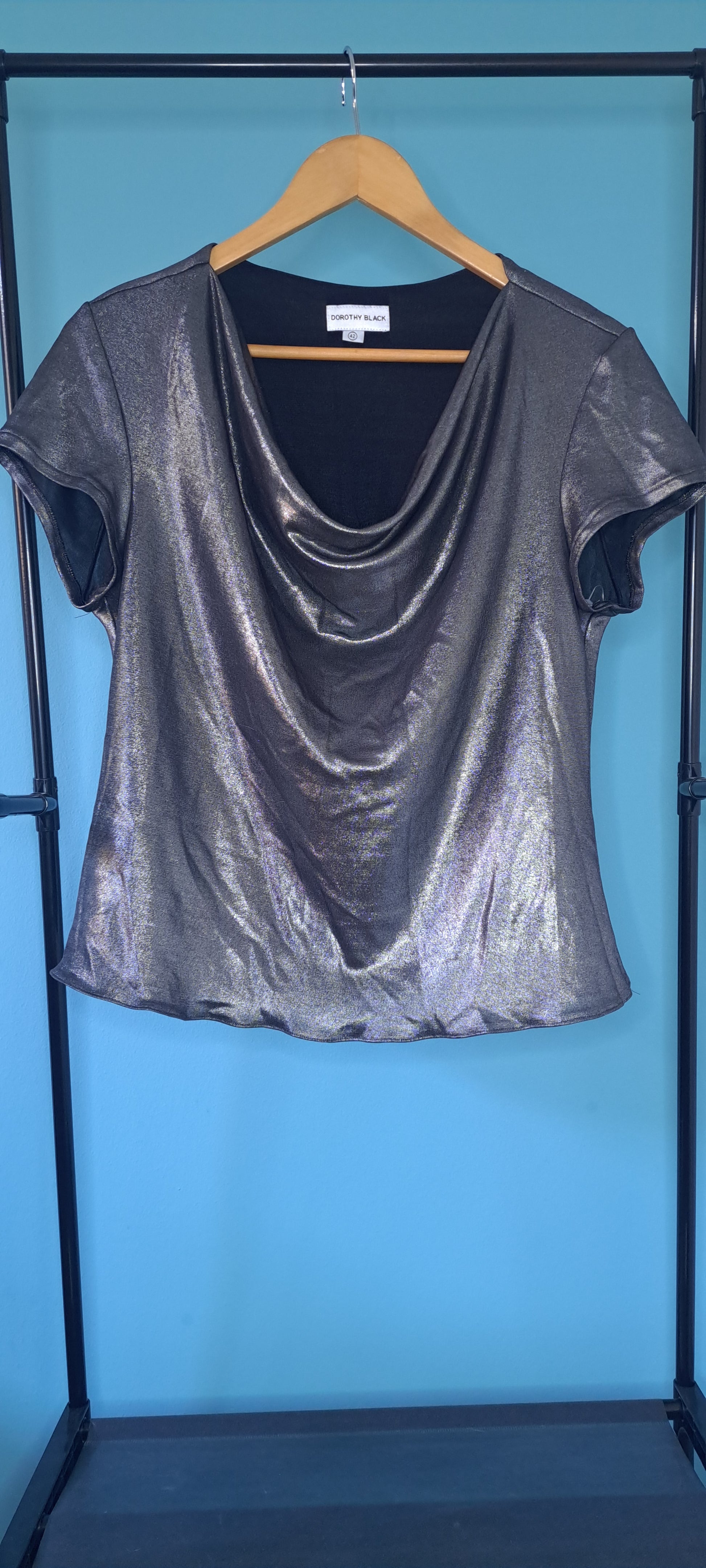 Blusa manga corta de un plateado intenso ideal para una fiesta en donde prefieras lucir un escote pronunciado pero... linda linda!